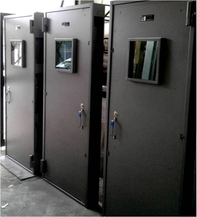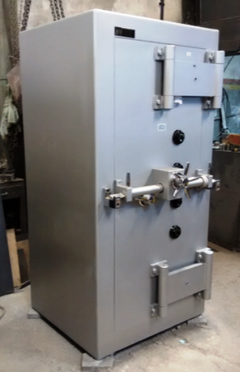 Se construye en acero SAE 1010/1020, provista de cerradura con retardo de apertura y cerradura a llave doble paleta doble vuelta.