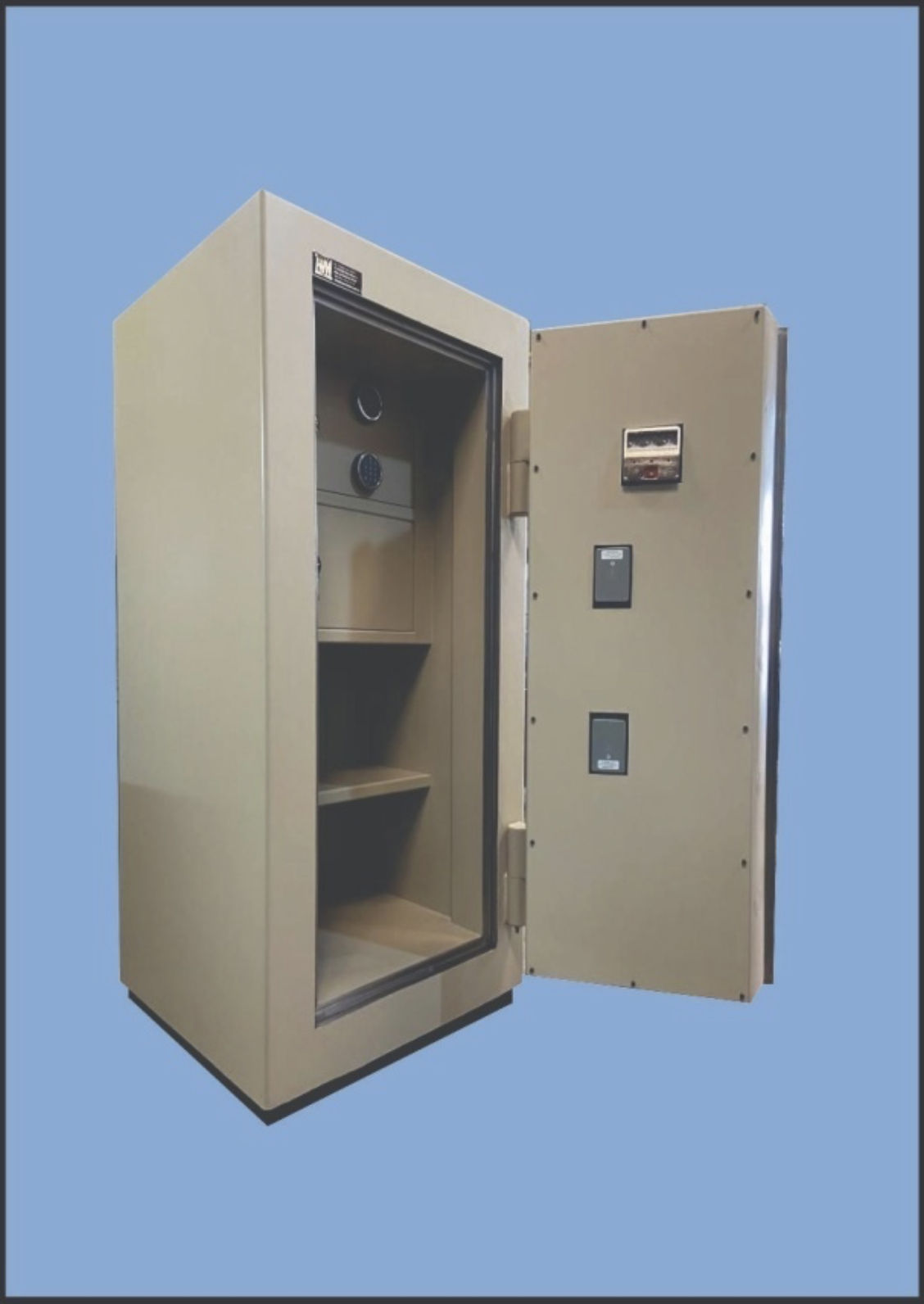 Cuenta con dos cerraduras de combinación numérica de cuatro discos, con 100 millones de cambios posibles, de eje indirecto. Además cuenta con una cerradura triplecronometrica con tres cronómetros de precisión de 160 horas de acción consecutivas, en cuerda y cuadrantes, mecánicos independientes, desmontables para su limpieza y revisión, con lupas ópticas aumento (2 – 1) individuales para cada cronometro, y equipada con dispositivo interior para desconectar la posición de cierre.