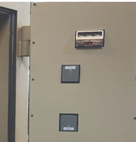 Cuenta con cuatro cerraduras las mismas pueden ser mecánicas de combinación numérica de cuatro discos, con 100 millones de cambios posibles, de eje indirecto. O electrónicas. Si se produjera una falla en las cerraduras de uso habitual se accionarían las de emergencia para poder abrir la puerta.
