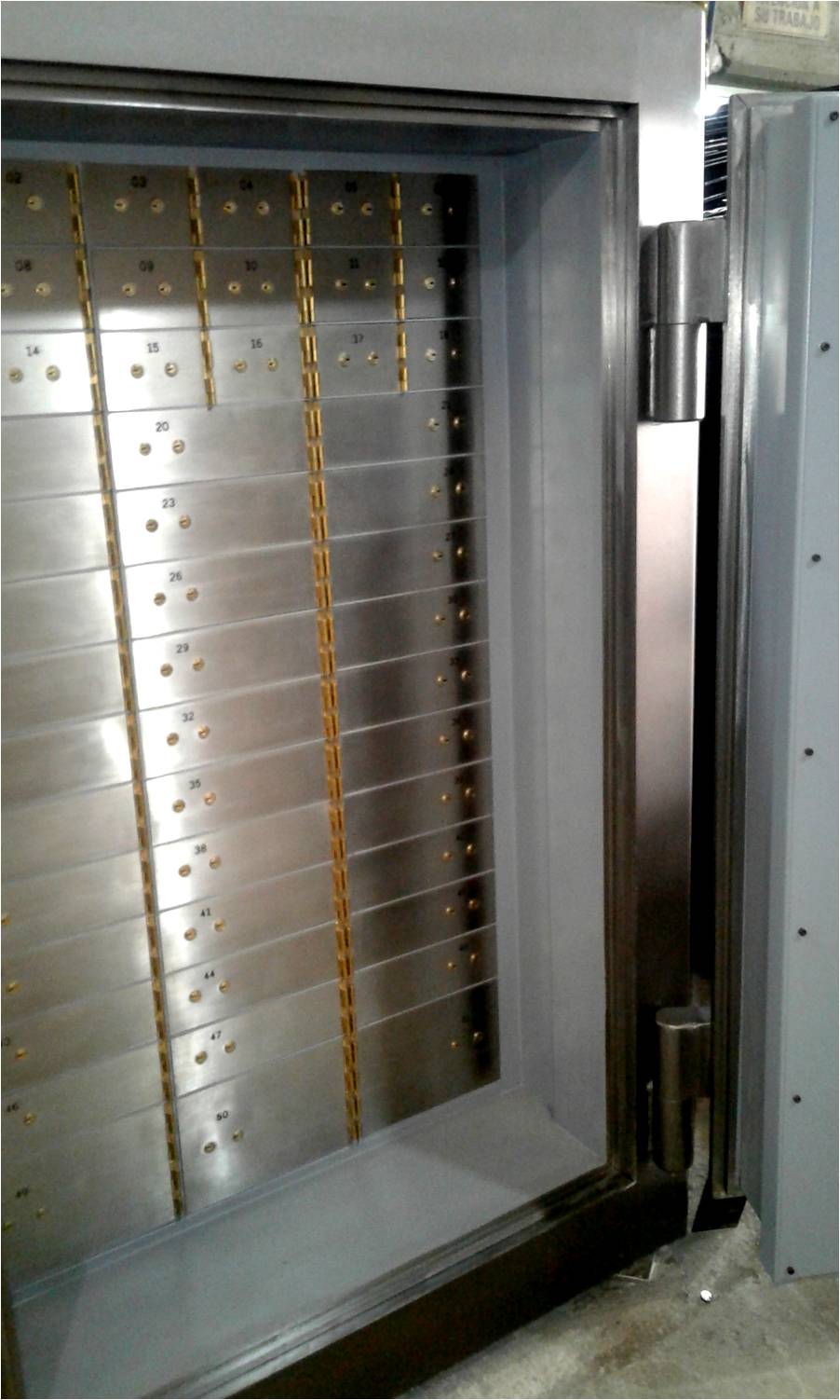 Las puertas llevan cobertura exterior de acero inoxidable y cerradura doble boca, accionada por cliente y entidad bancaria.